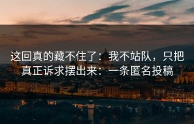 这回真的藏不住了:我不站队,只把真正诉求摆出来:一条匿名投稿 一条匿名投稿原文 匿名投稿原文如下:...
